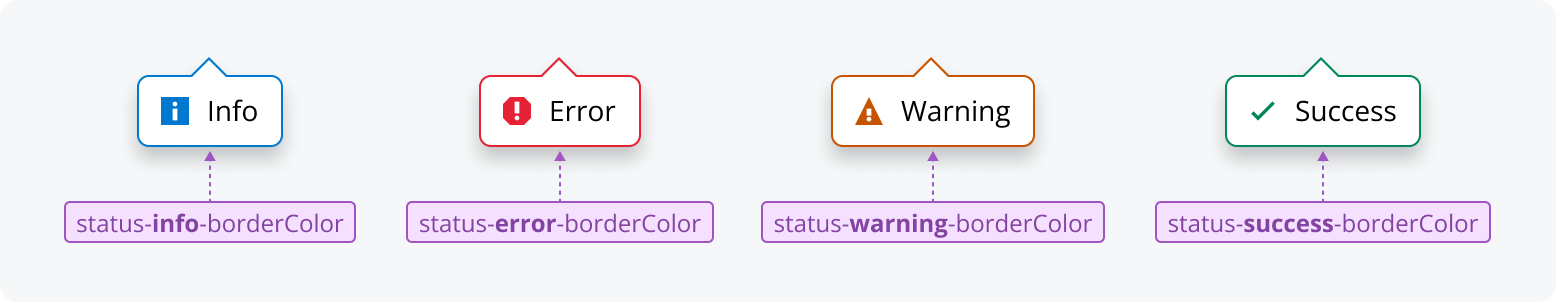 - Property*: Indicates the UI attribute the token applies to (e.g., background, border, shadow, foreground).